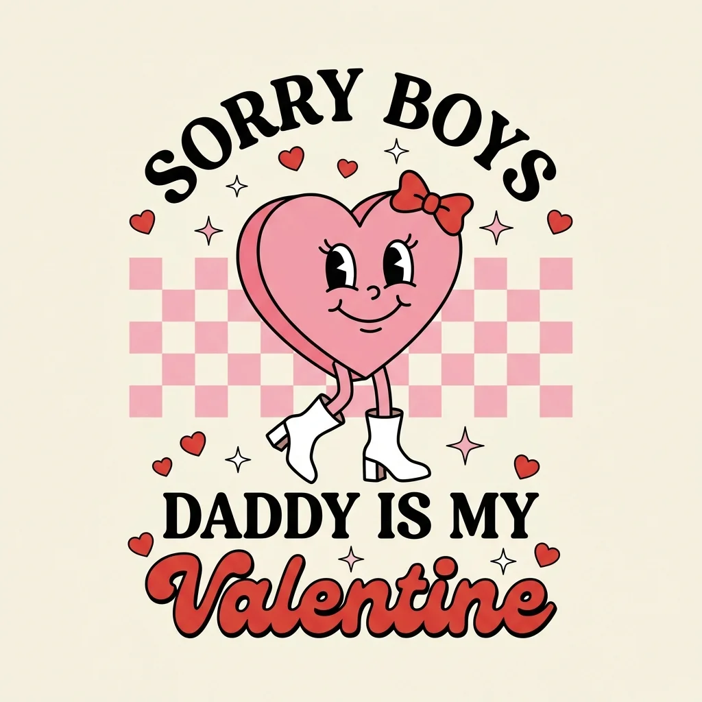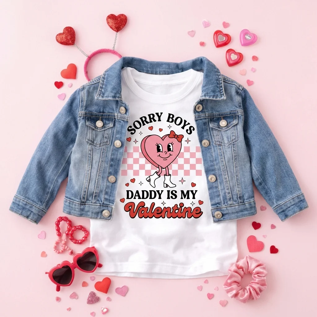 Sorry Boys Daddy Is My Valentine Kids Shirt – Retro Groovy Valentine’s Day Tee